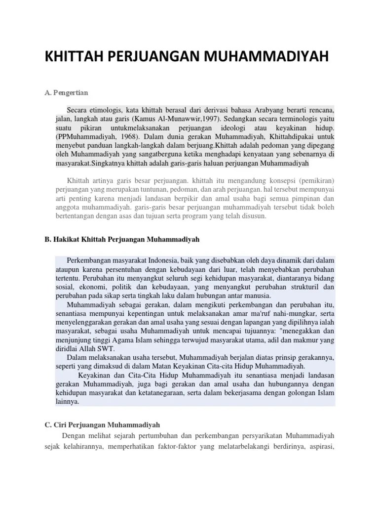 Sejarah perumusan kepribadian muhammadiyah term "kepribadian . Khittah perjuangan muhammadiyah yang pertama kali dirumuskan adalah. Menjelaskan matan khittah muhammadiyah perjuangan muhammadiyah. Khittah muhammadiyah muktamar ke 40 di . Makalah khittah muhammadiyah disusun untuk memenuhi tugas mata kuliah :